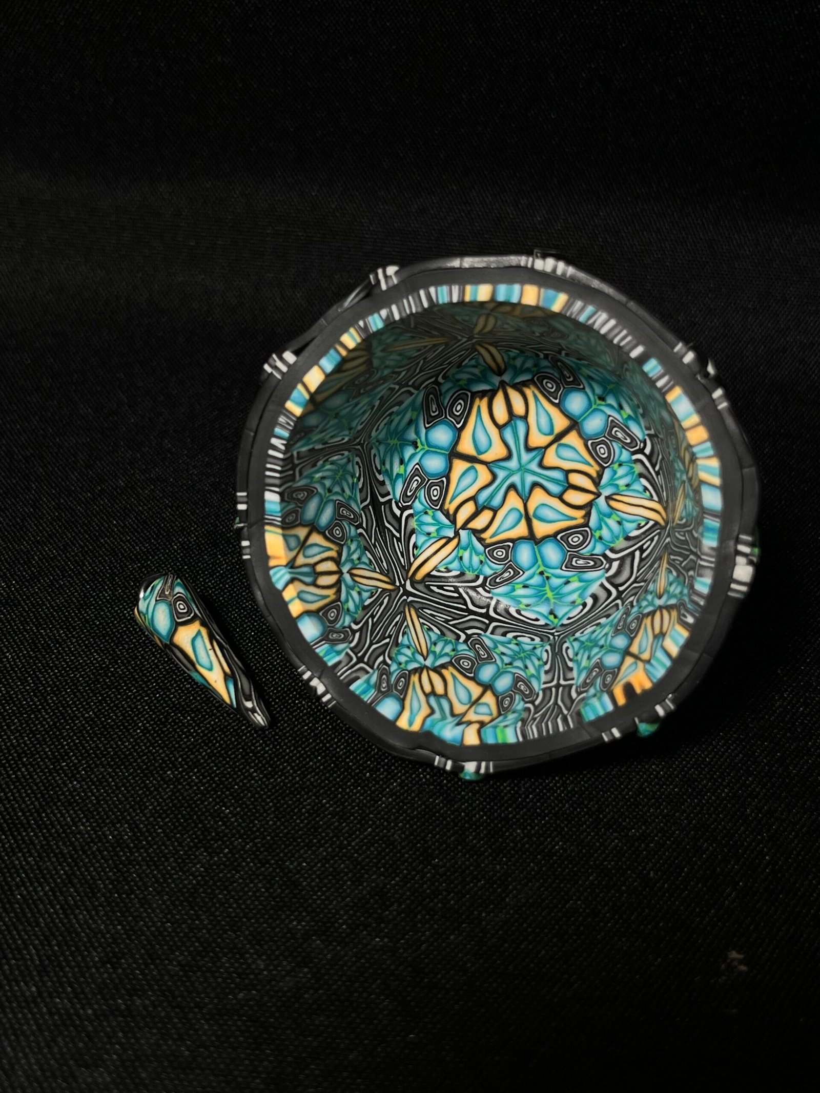Cada cuia é moldada à mão em cerâmica plástica com detalhes psicodélicos e design exclusivo. São peças únicas, cheias de identidade, perfeitas pra quem valoriza o artesanal com estilo.