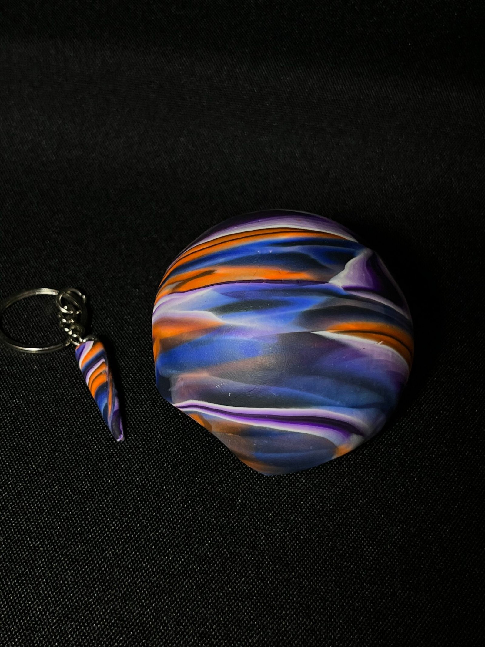 Cada cuia é moldada à mão em cerâmica plástica com detalhes psicodélicos e design exclusivo. São peças únicas, cheias de identidade, perfeitas pra quem valoriza o artesanal com estilo.